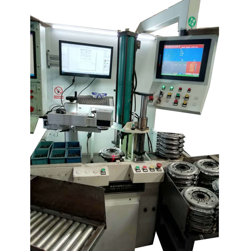 The automatic balancing machine of Shanghai Shenman AYLD-30 clutch riveting machine is designed and manufactured for balancing pressure plate assembly clutch assembly, automatic balancing hydraulic riveting design and manufacture of single-station balancing weighing machine, which uses fixture of locating pin and equipped with balancing weighing device to carry out balancing test on assemblies within specifications. Except manual loading and unloading and manual positioning of balancing rivets, all actions such as balancing measurement, intelligent positioning and parking, etc. The main shaft is locked when hydraulic riveting, riveting correction, laser marking, intelligent parking and re-checking are all carried out automatically by computer and PLC.